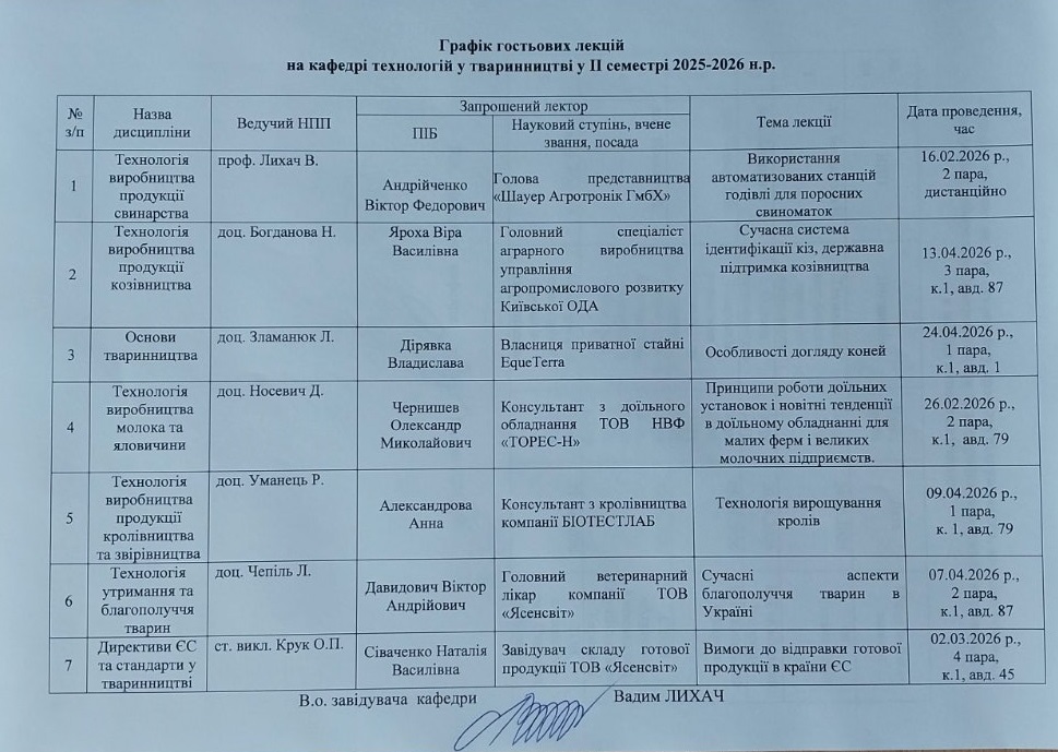 Для студентів ОС “Бакалавр” за спеціальністю “Технологія виробництва і переробки продукції тваринництва” викладаються дисципліни: