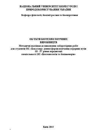Об'єкти біотехнологічних виробицтв / Бабицький А.І., Дрозд П.Ю. К.: НУБіП України, 2017 р. - 35 с.