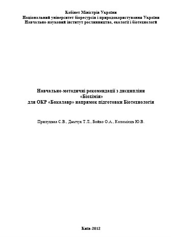 Біохімія / Прилуцька С.В., Демчук Т.Л., Бойко О.А., Коломієць Ю.В. К.: НУБіП України, 2012 р. - 64 с.