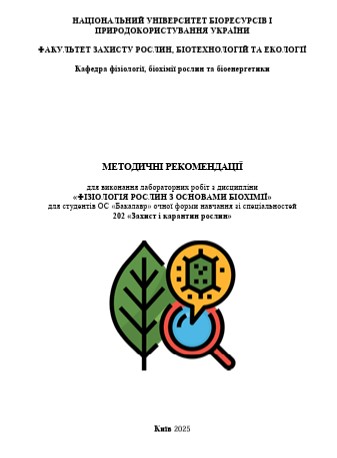 Фізіологія рослин з основами біохімії (202 Захист і карантин рослин) / Нестерова Н.Г., Бабицький А.І. К.: НУБіП України, 2025 р. - 70 с.