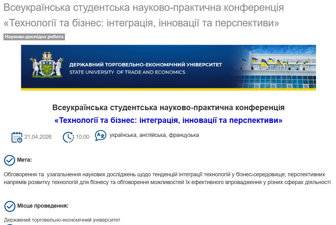 Наукові досягнення студентів як рушій інновацій у бізнесі, туризмі та індустрії гостинності