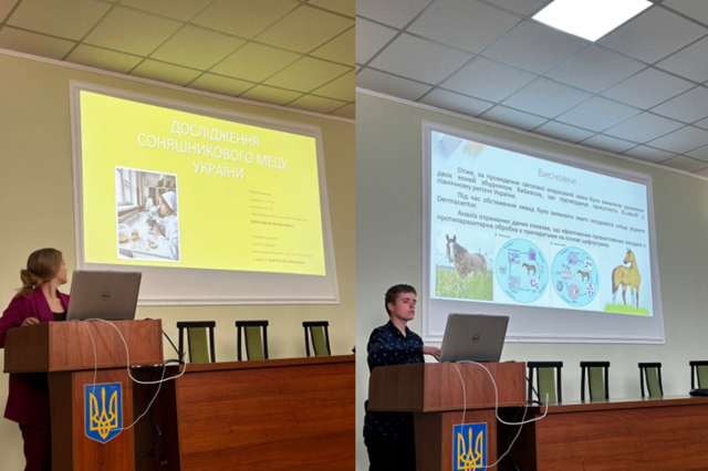 1 - МІСЦЕ: Бойко Карина Володимирівна (2 курс 11 група), науковий керівник: Гриб Юлія Володимирівна, кандидат ветеринарних наук, доцент. Науковий гурток: «Інновації та дорадництво у ветеринарно-санітарній експертизі харчових продуктів і кормів» на тему: «Дослідження соняшникового меду України» кафедра ветеринарної гігієни імені професора А. К. Скороходька
