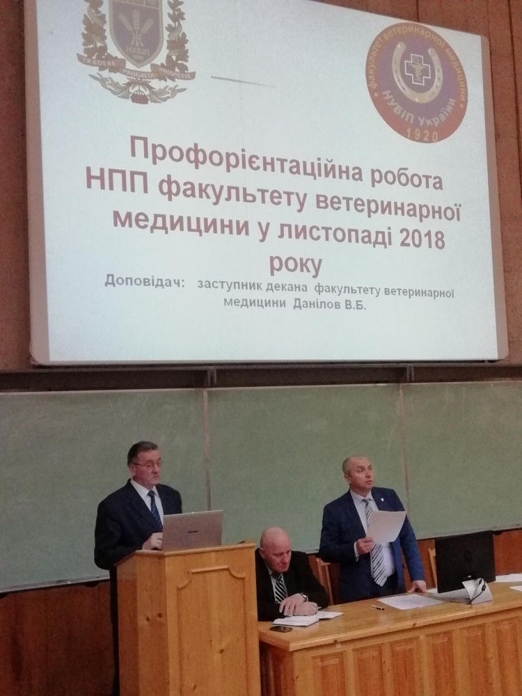 2. Про проведені профорієнтаційні заходи у листопаді 2018 р. (доп. заст. декана ФВМ доц. Данілов В.Б.).