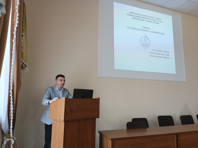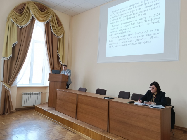 Андрій Галстян детально розповів про навчальну, наукову та методичну роботу кафедри загальної, органічної та фізичної хімії.