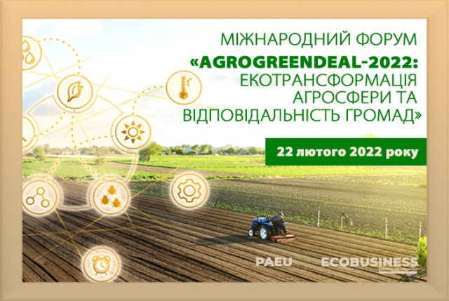 22 лютого запрошуємо на міжнародний форум «AgroGreenDeal-2022: екотрансформація агросфери та відповідальність громад»!