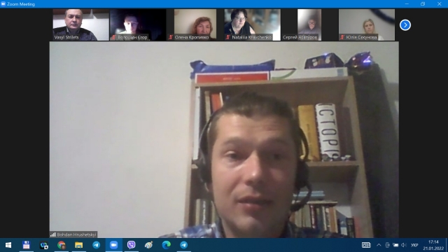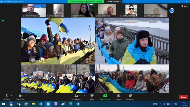 Розпочав розмову завідувач кафедри міжнародних відносин і суспільних наук, професор Василь Стрілець, який закцентував увагу на тому, що День Соборності України має надзвичайно велике значення в контексті протидії сучасній російській пропаганді, одним із наративів якої є хибне твердження про відсутність єдності українського народу, який нібито поділяється на проросійську більшість і прозахідну меншість, що мешкає на західноукраїнських землях.