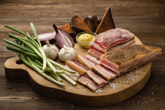 Його мета – привернути увагу до традиційної української кухні та продуктів. Цей день був започаткований у 2015 році і відтоді став традиційним. Сало – справжній національний кулінарний символ та гордість України. Його люблять у солоному, сирому, запеченому вигляді, перемелене з часничком і так далі… Любов українців до сала виправдана не лише його смаком, а ще й корисними властивостями, які підтвердили експерти. У складі цього продукту є вітаміни А, Е, D, F, мікроелемент селен. Одна з найцінніших складників – арахідонова кислота, яка стимулює роботу головного мозку та серцевого м’яза, поліпшує роботу нирок, виводить з крові зайві холестеринові згустки. Дієтологи вважають, що любов до сала пояснює довголіття української нації. Відомо, що наші предки вживали сало майже щодня, за винятком посту. Багато хто вважає, що українці поїдають цей продукт кілограмами та вживають його щодня. Але проведене в Європі опитування засвідчило, що українці займають лише 13 позицію у переліку країн, де споживають цей продукт. З’ясувалося, що в Україні м’ясо курки популярніше, ніж свинина. Згідно зі статистичними даними ООН і Євросоюзу, найбільше сала їдять данці. Історія і культурне значення. У буквальному розумінні праслов’янське (словацьке) слово sadlo означає “насаджене”. Йдеться про підшкірний свинячий жир, “насаджений” на м’ясо. Вперше східнослов’янську форму “сало” містить історичний опис ханської трапези у стародавніх хозарів у VII столітті. Солоне або солено-копчене сало може називатися запозиченими словами “шпик” (німецьке) або “бекон” (англійське). Для сала з прожилками м’яса є уточнювальний термін “підчеревина”, для засоленого сала – “грудинка”, для невеликих обсмажених шматочків – “шкварки”, для топленого кулінарного жиру – “смалець”. Вживати у їжу можна свіже, солоне, копчене, варене, тушковане, смажене та морожене сало. З салом люди знайомі не одне тисячоліття. Однак батьківщиною цього продукту є не Україна, а Італія. За часів Стародавнього Риму солоним салом lardo харчувалися раби, трудівники каменоломень та римські легіонери. Постачання армії калорійним продуктом, що не псується, регулювалося спеціальним законом імператора Юстиніана. У середньовічній Європі сало прижилося на монастирській кухні послушників Ордену бенедиктинців, і з’явилося воно в монастирі з дозволу ченця-засновника Святого Бенедикта. На столах аристократів сала раніше не було: еліта воліла їсти молоде м’ясо.