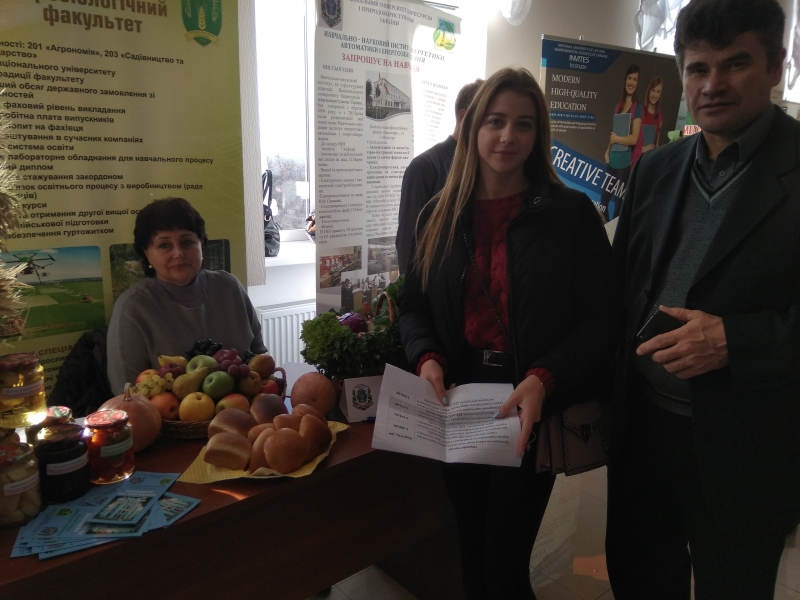 Відповідальний за профорієнтаційну роботу на факультеті доцент кафедри овочівництва і закритого грунту Олександр Цизь ознайомив присутніх з перевагами навчання у НУБіП України, базами практичної підготовки та навчання, а також зазначив, що для студентів важливим є відпочинок, для цього тут створені всі умови: є оздоровчий табір, працює достатньо різних секцій та гуртків, крім того сам університет розміщений у мальовничому місці, де студенти гуляють і відпочивають. Кожному були роздані буклети про університет та факультет.