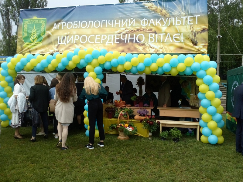 Високопоставлені гості та керівництво університету оглянули експозиції, які підготували підрозділи факультету. Як і завжди, кожен підрозділ презентував свої родзинки. Дарами природи і продукцією із НДП «Плодоовочевий сад» були прикрашені композиції факультету. Кафедра переробки та зберігання продукції рослинництва широко презентувала відвідувачам різноманітну випічку та соки власного виробництва, кафедра селекції – селекційні досягнення, кафедра землеробства – екологічні системи землеробства, кафедра агрохімії – діагностику живлення рослин. Тож усі бажаючі змогли ознайомитися з їхньою освітньою, науковою та методичною діяльністю.