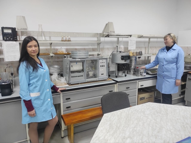 Стан підготовки кафедра технології зберігання, переробки та стандартизації продукції рослинництва ім. проф. Б.В. Лесика продемонстрував Григорій Подпрятов разом із завідуючими лабораторіями Лесею Яблонською та Катериною Корнійчук.