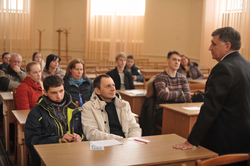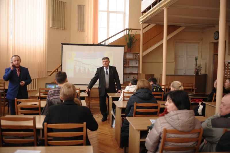 Після цього майбутніх абітурієнтів, бажаючих вступати на агробіологічні спеціальності, радо зустріли представники факультету на чолі з деканом Віктором Забалуєвим в читальному залі 4 корпусу. Професор Віктор Забалуєв розпочав зустріч з короткого ознайомлення з історією факультету, його спеціальностями, організацією навчального процесу, особливостями навчання та проходження практики за кордоном, а також наголосив про можливості отримати додатково 20 балів до вступного рейтингу, при умові участі в олімпіаді.