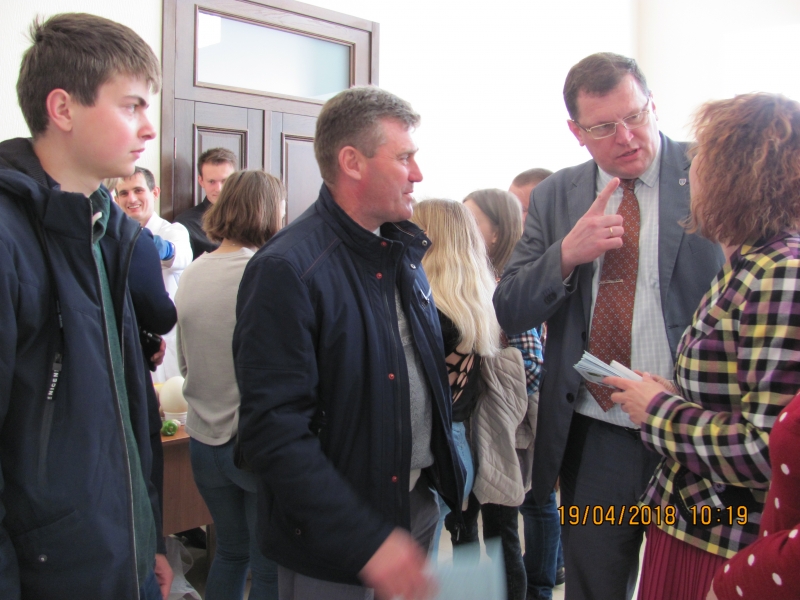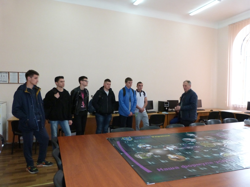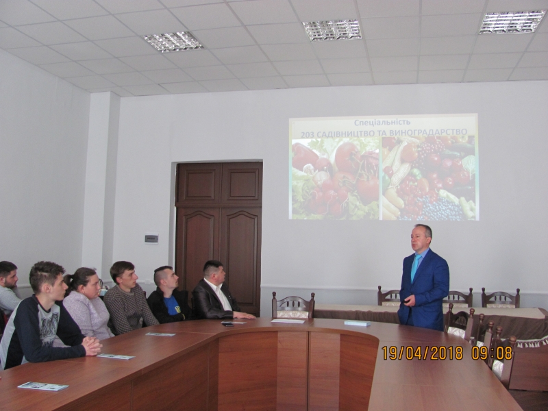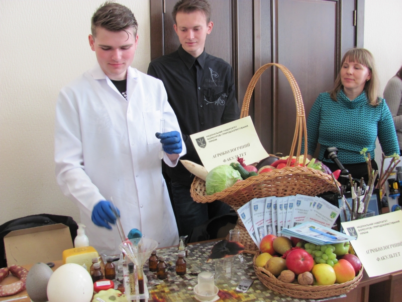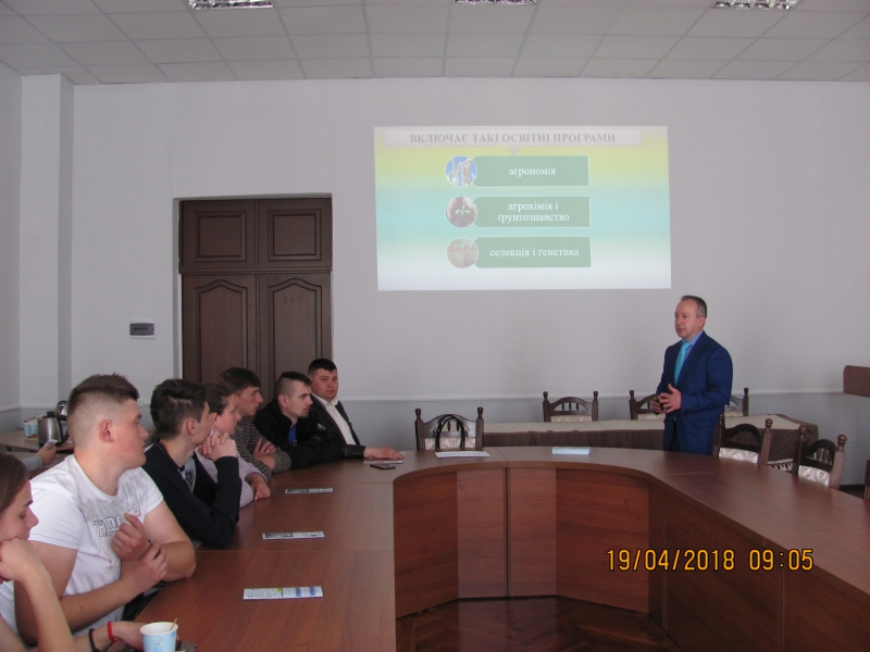 Відповідальний за профорієнтаційну роботу на факультеті доцент Олександр Цизь ознайомив присутніх з перевагами навчання у НУБіП України, базами практичної підготовки та навчання, а також зазначив, що для студентів дуже важливим є відпочинок, для цього створені тут всі умови: є оздоровчий табір, працює достатньо різних секцій та гуртків, крім того сам університет розміщений у мальовничому місці, де студенти гуляють і відпочивають.