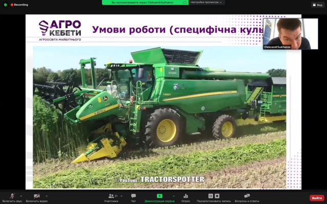 Протягом поточного тижня Олександр та його колеги ознайомлять студентів з тими тенденціями, які є превалюючими на ринку сільськогосподарської техніки загалом та комбайнів, зокрема. До цих гостьових лекцій мають можливість долучатись студенти із регіональних унівесритетів, що є учасниками проекту "Агрокебети".