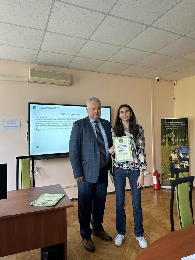 На початку засідання декан Анатолій ОСТАПЧУК вручив здобувачам освіти дипломи переможців I туру Всеукраїнського конкурсу студентських наукових робіт з галузей знань і спеціальностей у 2024-2025 навчальному році.