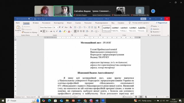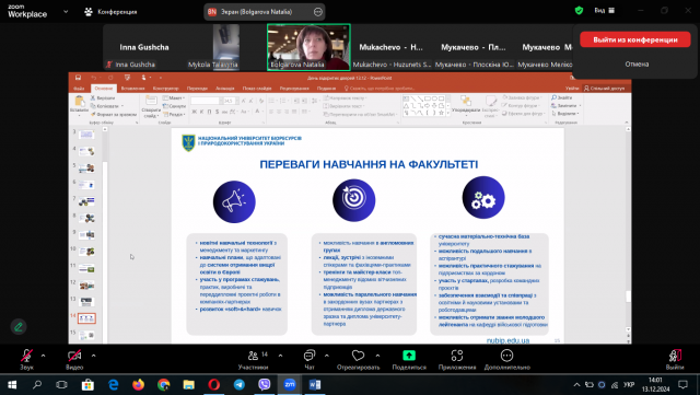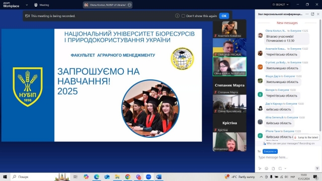 13 грудня 2024 року факультет аграрного менеджменту гостинно відчинив двері для своїх майбутніх студентів в онлайн форматі. Науково-педагогічні працівники нашого факультету разом зі студентами запросили абітурієнтів з різних регіонів України, завчасно домовившись з директорами та заступниками директорів шкіл про організацію колективних підключень старших класів.