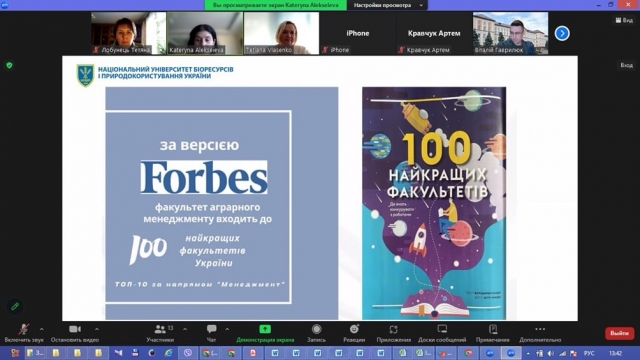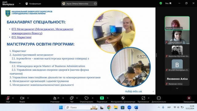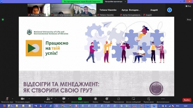 Кафедра виробничого та інвестиційного менеджменту запросила на онлайн зустріч старшокласників СЗШ №50 Святошинського району міста Києва та Буківської гімназії Сквирської міської ради Київської областміста Києва шкіл. На початку заходу завідувач кафедри Тетяна Власенко привітала гостей та представила колег – співробітників кафедри, віддавши право координувати та вести захід доценту Катерині Алексеєвій. Катерина Алексеєва презентувала старшокласникам факультет аграрного менеджменту, зазначивши, що за версією журнал Forbes він входить до ТОП-10 найкращих факультетів України, представила його структуру, спеціальності та освітні програми, розповіла про особливості навчального процесу та студентське життя. Також акценти були зроблені на перевагах набуття фаху проектного менеджера в сучасних умовах. Наприкінці старшокласникам були надані всі необхідні контакти для потенційного зв’язку та супроводу при подачі документів в приймальну комісію, у тому разі, якщо сташокласники зроблять вибір на користь нашого факультету. Після цього на школярів чекав інтерактивний воркшоп на тему: "Відеоігри та менеджмент: як створити свою гру?", який провів доцент Віталій Гаврилюк. Старшокласникам довелося задуматися чому відеоігри для них такі привабливі та як їх можна використати для власного розвитку, наприклад, проводити самоаналіз або використовувати у реальному житті отримані під час гри навички.