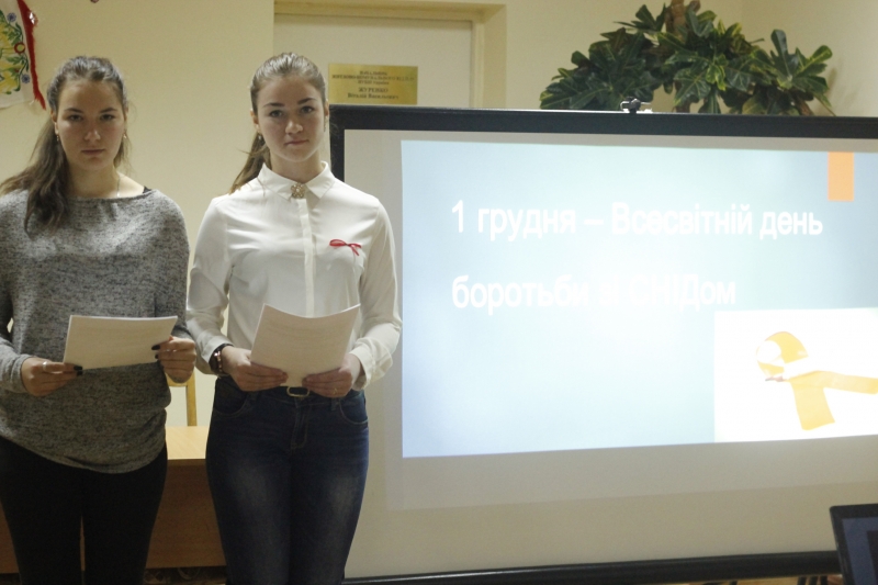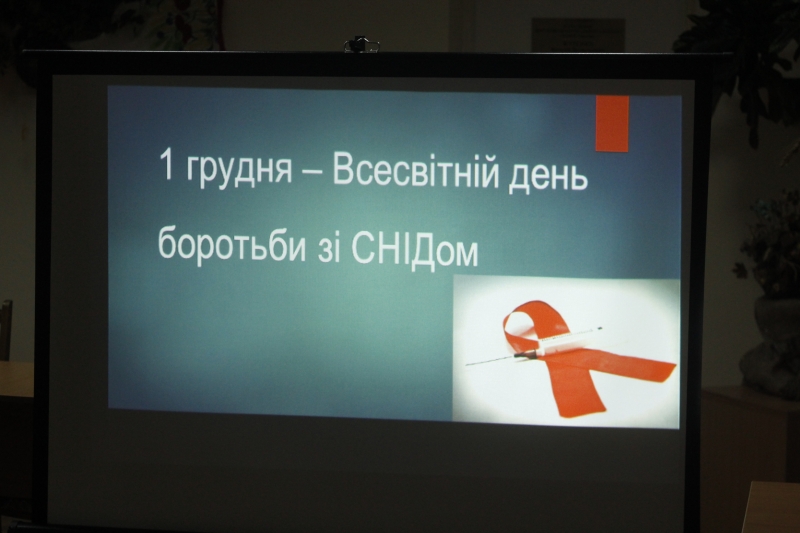 Наступного ж дня у читальному залі гуртожитку № 11 був проведений захід до Дня бортьби зі СНІДом, який відзначають у всьому світі 1 грудня. Ця страшна хвороба для України є одною з найболючіших. До уваги гостей заходу була представлена цікава презентація, яка повідомляла про методи передачі та симптоматику СНІДу. В наш час, нажаль, це набуває великого поширення серед молоді. Великої уваги було надано питанню щодо способів уникнення інфікування. Також студенти дізналися багато іншої корисної інформації. Головною метою вечора було донести до гостей, що проблема синдрому набутого імунодефіциту, зараз є як ніколи актуальна.