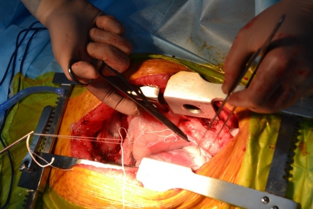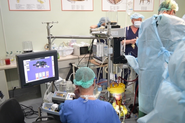 На базі кафедри хірургії і патофізіології ім. акад. І.О. Поваженка впродовж червня місяця спільно з Державною установою «Науково-практичний медичний центр дитячої кардіології та кардіохірургії Міністерства охорони здоров’я України» за підтримки Міжнародного благодійного фонду «Дитяче серце» провели експериментальні дослідження «Доклінічне випробування (тренування) алотрансплантації серця на тваринах».