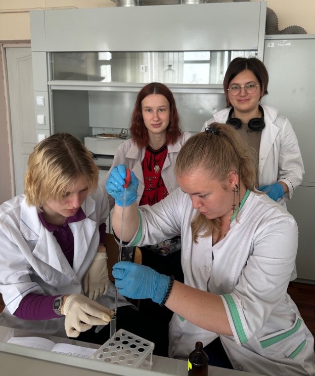 Завдяки біохімічним дослідженням ветеринарні лікарі можуть детально вивчати стан печінки, нирок, серця та інших органів, а також виявляти метаболічні порушення. Біохімічні тести дозволяють не лише діагностувати захворювання, але й контролювати їх перебіг та ефективність лікування. Вивчення біохімічних синдромів допомагає правильно визначити симптоми, розуміти причини захворювань та створювати індивідуальні протоколи лікування. Виконання біохімічних дослідів не лише корисне і повчальне, а й дуже цікаве заняття, наприклад, на лабораторних заняттях ми досліджували кетонові тіла у сечі, що є маркером порушень жирового та вуглеводного обміну, зокрема при кетозі у жуйних тварин та діабеті у собак і котів. Ці тіла утворюються внаслідок підвищеного розщеплення жирів і служать важливим клінічним показником, оскільки накопичення кетонових тіл може призвести до ацидозу – небезпечного для життя стану. Для цього досліду ми використовували експрес-метод – діагностичні індикаторі смужки. За їх допомогою студенти визначали концентрацію кетонових тіл у сечі. Найцікавішим дослідом була Проба Росса, в якій після всіх зроблених етапів досліду через декілька хвилин вміст пробірки змінив колір на червоно-фіолетовий, що свідчило про наявність кетонових тіл. На тлі цього дослідження викладач надав нам цікаву можливість поставити ймовірний діагноз та аргументувати свій вибір. Це чудове тренування для лікарів вміння аналізувати та аргументувати свою думку.