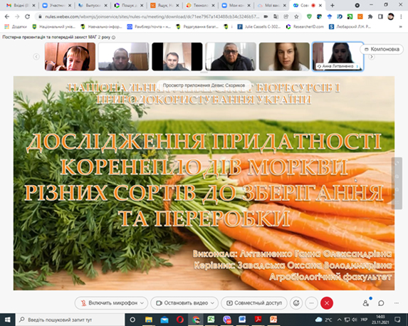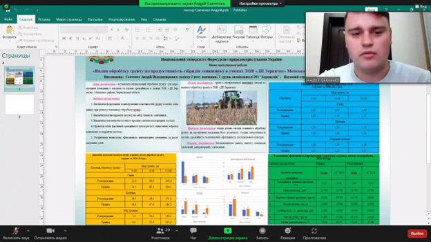 Однією з перших розпочала чергу конференцій кафедра грунтознавства та охорони грунтів ім. проф. М.К. Шикули. Професор кафедри, декан агробіологічного факультету Оксана Тонха розпочала її з привітального слова та підбадьорення студентів, для яких це була перша репетиція захисту дипломних робіт. Після заслуховування, завідувач кафедрою, доцент Юрій Кравченко разом з колективом кафедри дали цінні настановчі поради.