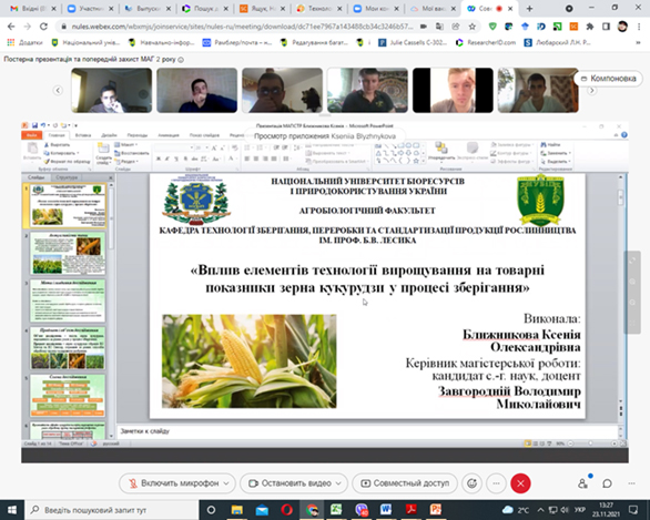Випуск кафедри садівництва ім. проф. В.Л. Симиренка поповнився на 8 магістрів денної та 6 заочної форми навчання. Завідувач кафедри, доцент Борис Мазур та колектив кафедри доклали максимум зусиль, щоб дистанційний режим конференції відбувся в максимально дружній і в той же час конструктивній атмосфері. Доповідачі викладалися на повну і уважно занотовували всі рекомендації і пропозиції до їх доповідей.