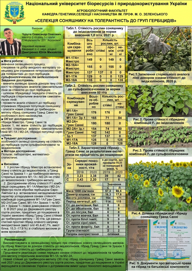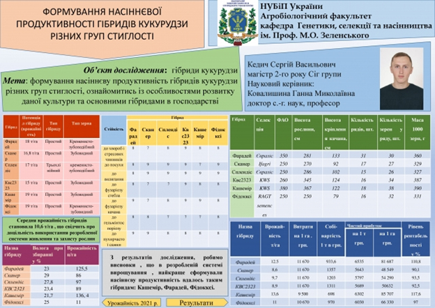 Завідувач кафедри генетики, селекції та насінництва ім. проф. М.О. Зеленського, доцент Олександр Макарчук разом з колективом кафедри провели постерну конференцію для магістрів-випускників із залученням гуртківців кафедри «Селекціонер генетик», адже кожен член великої родини селекціонерів захотів підтримати майбутніх колег на шляху до фінішу навчання. Також за проведенням відкритого голосування члени кафедри визначили переможця конференції Андрія Ракова. Також відзначили роботи Олександра Чижова, Олександра Чурути та Марини Можарівської яким присвоїли друге місце. Сподобалися роботи Анатолія Шиппа та Олександра Кедича.