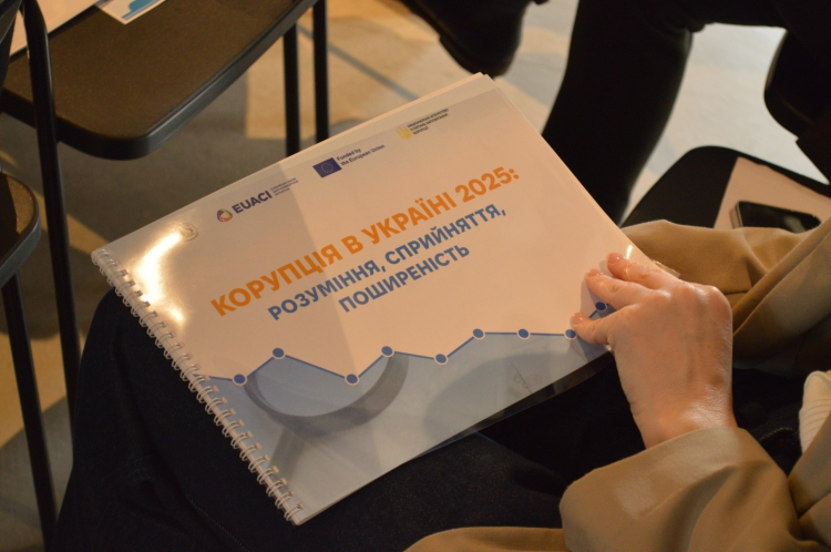 31 березня 2026 року в київській книгарні «Сенс» відбулася презентація результатів загальнонаціонального соціологічного дослідження «Корупція в Україні 2025: розуміння, сприйняття, поширеність», організована НАЗК за підтримки Антикорупційної ініціативи Європейського Союзу в Україні.