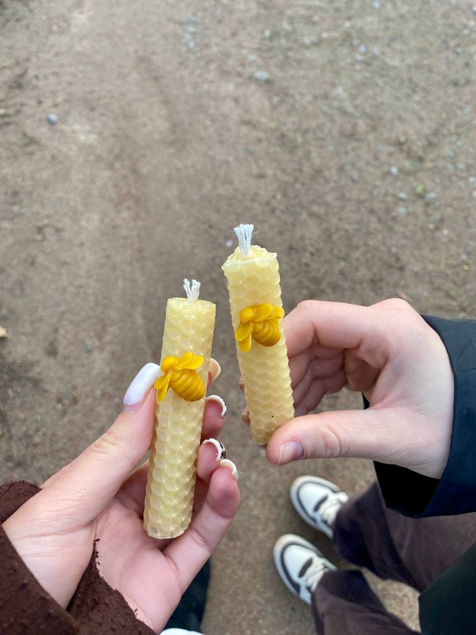 Однією з найприємніших частин нашої роботи стало створення свічок з вощини. Ми навчились: