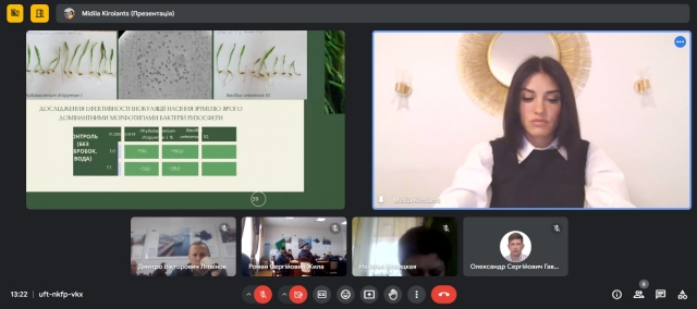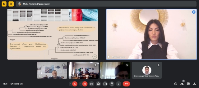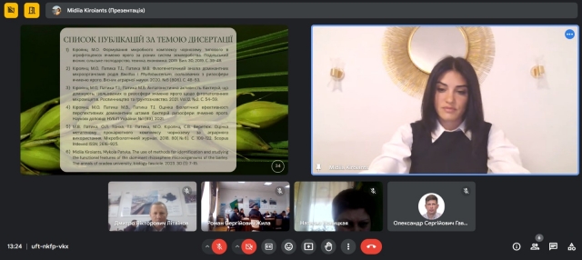 Спочатку заслухали наукові результати здобувача ступеня доктора філософії Мідію Олегівну на тему: «Визначення функціонально-значущих рослинно мікробних взаємодій ризосфери ячменю ярого в чорноземі звичайному».