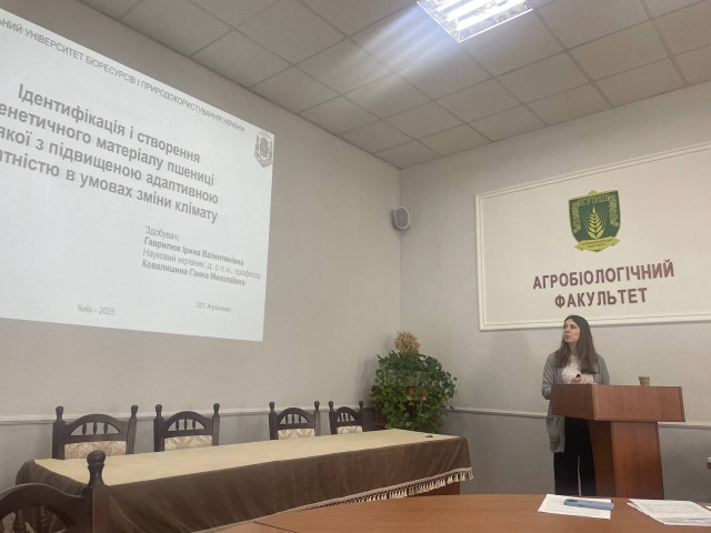 Першою представила свою роботу Гаврилюк Ірина Валентинівна. Тема її дисертації — «Ідентифікація і створення генетичного матеріалу пшениці м’якої з підвищеною адаптивною здатністю в умовах зміни клімату». Дослідження викликало значну зацікавленість серед учасників, адже розробка адаптивних сортів пшениці є вкрай актуальною в умовах глобальних кліматичних змін. Рецензентами роботи виступили доктор сільськогосподарських наук, професор кафедри рослинництва НУБіП України Новицька Наталія Валеріївна та кандидат сільськогосподарських наук, доцент кафедри генетики, селекції і насінництва ім. проф. М.О. Зеленського Дмитренко Юлія Михайлівна. Другою свою роботу презентувала Нестерова Катерина Андріївна, яка досліджувала «Вдосконалення методів аналітичного контролю ксенобіотиків у водних екосистемах та продукції агропромислового комплексу». Її наукова розвідка є надзвичайно важливою для екологічної безпеки, моніторингу довкілля та контролю якості продукції АПК. Експертами виступили кандидат сільськогосподарських наук, доцент кафедри екології, агросфери та екологічного контролю Ладика Марина Миколаївна та кандидат педагогічних наук, доцент цієї ж кафедри Строкаль Віта Петрівна.