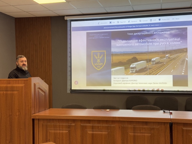 Під час атестації аспірант першого року навчання Дмитро КУРИЛКО представив свою наукову роботу, розповів про основні напрями підвищення ефективності експлуатації вантажного автомобіля при русі в колоні, окреслив ключові завдання та результати, яких вже вдалося досягти. Він також представив план подальшої роботи над дисертацією, підкреслив важливість застосування сучасних методів аналізу та моделювання у своїх дослідженнях. Члени комісії позитивно оцінили його роботу, надали конструктивні зауваження та рекомендації щодо подальшого вдосконалення дослідження, запропонували розширити коло аналізованих джерел та активізувати роботу над публікаціями у фахових виданнях.
