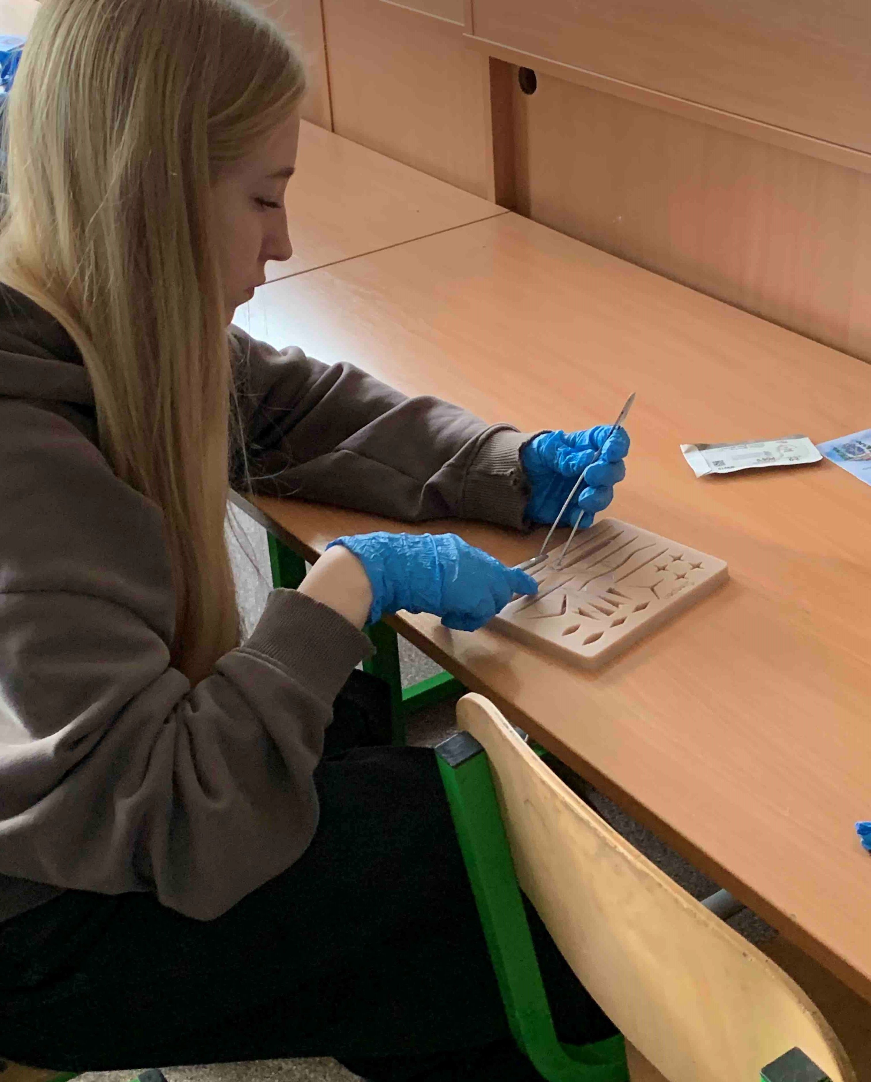 Під час зустрічі обговорювалися особливості професії ветеринарного лікаря, надання першої долікарської допомоги тваринам в умовах воєнного стану, а також було проведено майстер-клас із накладання хірургічних швів на спеціальних тренажерах. Також було обговорено про можливість системного проведення профорієнтаційної роботи серед учнів.