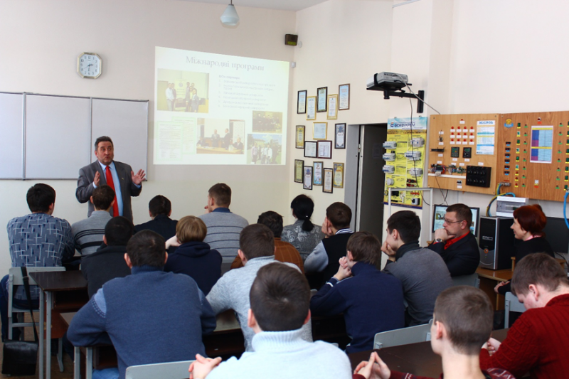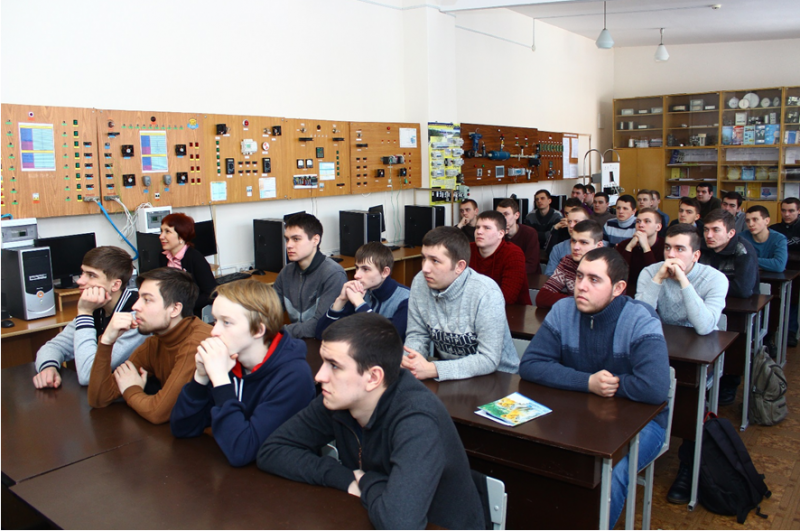 У Сумському коледжі харчової промисловості відбулася незвичайна за формою зустріч студентів і викладачів спеціальності «Монтаж, обслуговування засобів і систем автоматизації технологічного виробництва» із доцентом кафедри автоматики та робототехнічних систем ім. акад. І.І. Мартиненка Володимиром Решетюком. Із однієї сторони, господарі хотіли продемонструвати свої здобутки, з іншої сторони – В. Решетюку хотілося б випускникам представити свою кафедру (а повірте, є про що сказати і показати!), для продовження навчання у НУБіП України.