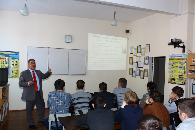 Для початку він розповів про спеціальності за якими готують фахівців у ННІ енергетики, автоматики і енергозбереження. А оскільки зустріч проводилася в діалоговому режимі, природньо, що студенти, які дуже добре обізнані в автоматиці, бажали більше інформації надати саме в цій царині. І звісно усіх цікавило питання, де здобуваються глибокі знання, що вкрай необхідні висококваліфікованому фахівцю.