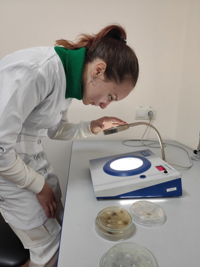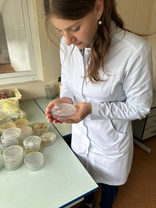 Бакалаврів гостинно зустріла і провела ознайомлення з науково-дослідним відділом моніторингу безпеки продукції АПК к. вет. н., старший дослідник, завідувач науково-дослідного відділу моніторингу безпеки продукції АПК Світлана Мідик.