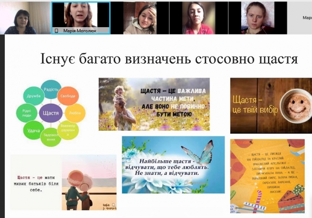 Також, кожен зі студентів висловив свою думку і розуміння слова «Щастя». Не дивлячись на те, що у кожного зі студентів бачення щастя було своє, але усі зійшлися на думці – важливим елементом щастя кожного є власне здоров’я та здоров’я рідних, мабуть до цього висновку нас підштовхнула непроста епідеміологічна ситуація у нашій країні і у цілому світі.