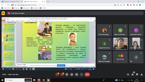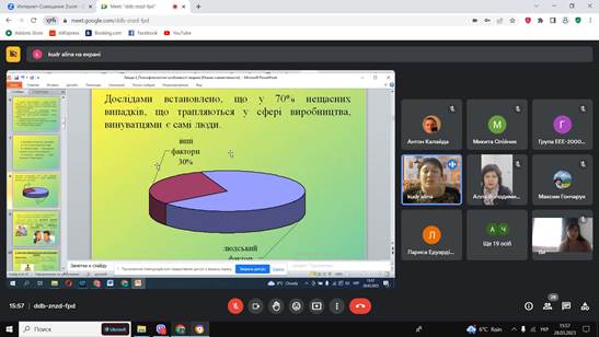 На лекцію приєдналися: завідувач кафедри Світлана Прилуцька, доцент Ольга Бойко, доцент Наталія Нестерова, заступник декана, доцент Петро Дрозд.
