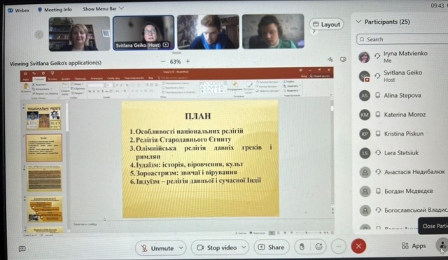 23 березня 2023 року відбулася відкрита лекція к.філос. наук, доцента кафедри філософії та міжнародної комунікації Гейко Світлани Миколаївни з дисципліни «Релігієзнавство». Лекція була присвячена національним релігіям, характеристиці визначальних рис та особливостям національних релігій. У ході проведення лекційного заняття здобувачі вищої освіти були ознайомленні з характерними рисами та особливостями національних релігій: релігій Стародавнього Єгипту та Греції (ранні національні релігії); іудаїзмом, зороастризмом, індуїзмом (пізні національні релігії).