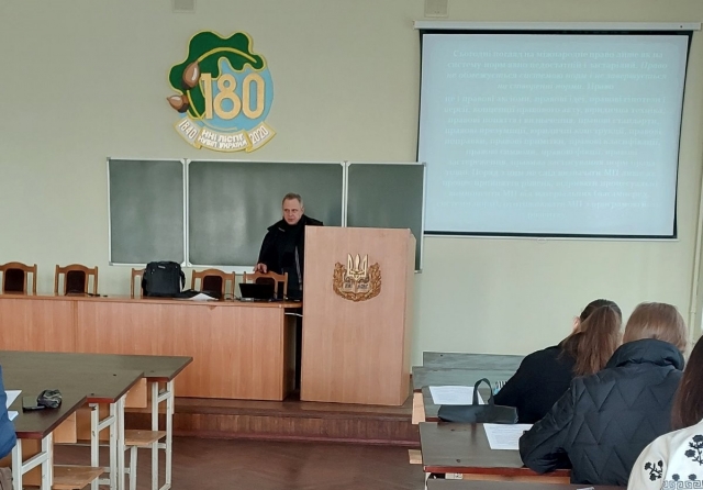 20 березня 2023 року відбулася відкрита лекція кандидата юридичних наук, доцента кафедри філософії та міжнародної комунікації Харчука Олександра Олександровича з дисципліни "Порівняльне конституційне та міжнародне публічне право". Лекція була присвячена поняттю, природі та сфері дії міжнародного права, його джерелам. У ході проведення лекційного заняття здобувачі вищої освіти були ознайомленні з поняттям міжнародного публічного права та різними підходами до його розуміння. Детально розглянули характерні риси сучасного міжнародного права, його функції і роль міжнародно-правової практики у формування його джерел.