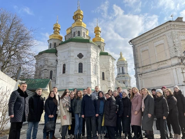 Заняття у нас проводяться не тільки в аудиторії. Вивчення курсу «Всесвітня спадщина ЮНЕСКО» - це захоплююче! Студенти-міжнародники 4-го курсу вже встигли побувати на лекції-екскурсії «Сакральний Київ» професора кафедри філософії та міжнародної комунікації Миколи Томенка та за особистої участі Любомира Михайлини, відомого археолога та історика, генерального директора Національного Києво-Печерського історико-культурного заповідника. Маршрут пролягав від Аскольдової могили та Меморіалу Голодомору до об’єктів Києво-Печерської Лаври. Спеціальна увага була приділена Проектам Фонду Миколи Томенка «Рідна країна» щодо повернення Костянтина Острозького, Івана Мазепи і Тараса Шевченка в УКРАЇНСЬКУ Києво-Печерську Лавру.