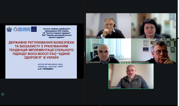 Антон ГЕРІЛОВИЧ (НДІ «Єдиного здоров'я») – акцентував увагу на державному регулюванні біобезпеки та біозахисту в контексті впровадження підходу «Єдине здоров'я» в Україні.