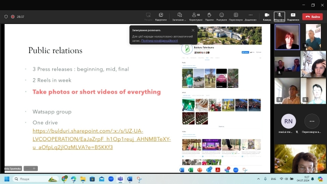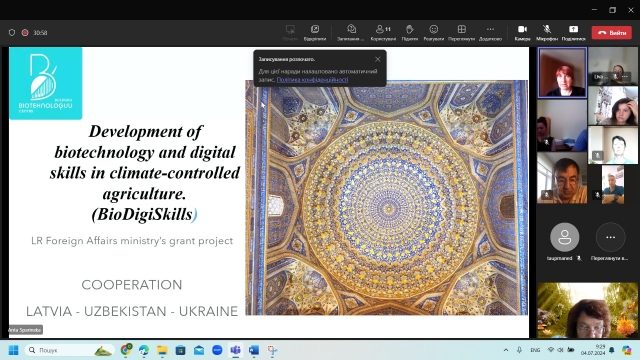 Під час зустрічі учасники проекту мали можливість познайомитися, обговорити його мету та окреслити план дій на найближчий період. Координаторка проекту пані Анта Спарінська, керівник відділу науки та розвитку Біотехнологічного центру Булдурі (Латвія), презентувала інформаційний огляд проєкту BioDigiSkills, мету та завдання, терміни виконання. Для налагодження комунікацій протягом проведення дослідження і виконання досліджень кожна сторона представила себе. Кожна зацікавлена сторона отримала завдання та обов'язки, а також ознайомилася з початковими кроками проєкту. На завершення зустрічі учасники мали можливість поставити запитання та отримати вичерпні відповіді.