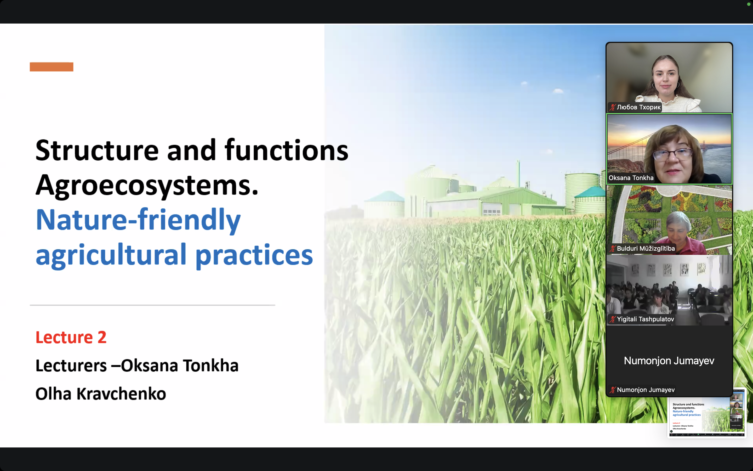 Перший день виявився надзвичайно продуктивним, значною мірою завдяки плідній роботі команди експертів з України. Учасники активно обговорювали ключові теми. У секції «Агроекологія: принципи та практика» були розглянуті питання від наукових основ до структури та функцій агроекосистем. Лекторами виступили професор Оксана ТОНХА та доцент, кандидат біологічних наук Ольга КРАВЧЕНКО.