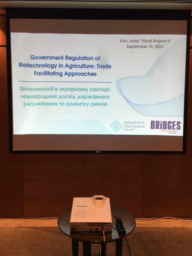 19 вересня 2023 р. проведено он-лайн семінар «Біотехнології в аграрному секторі: міжнародний досвід державного регулювання та розвитку ринків», організованого американським аграрним дорадчим центром BRIDGES.