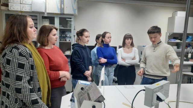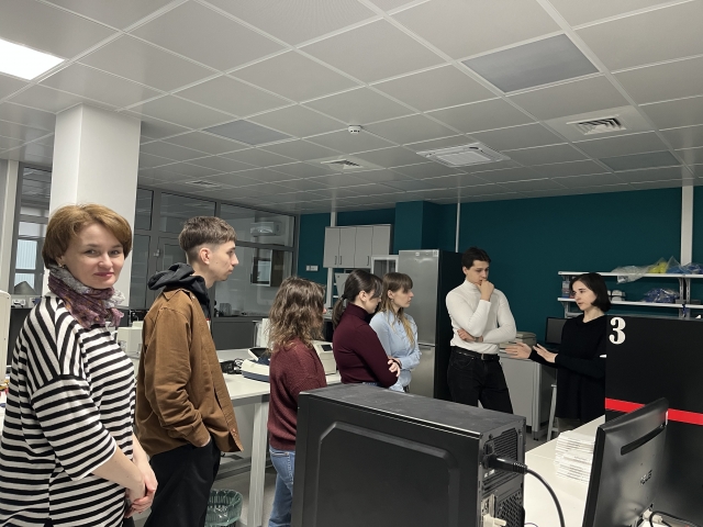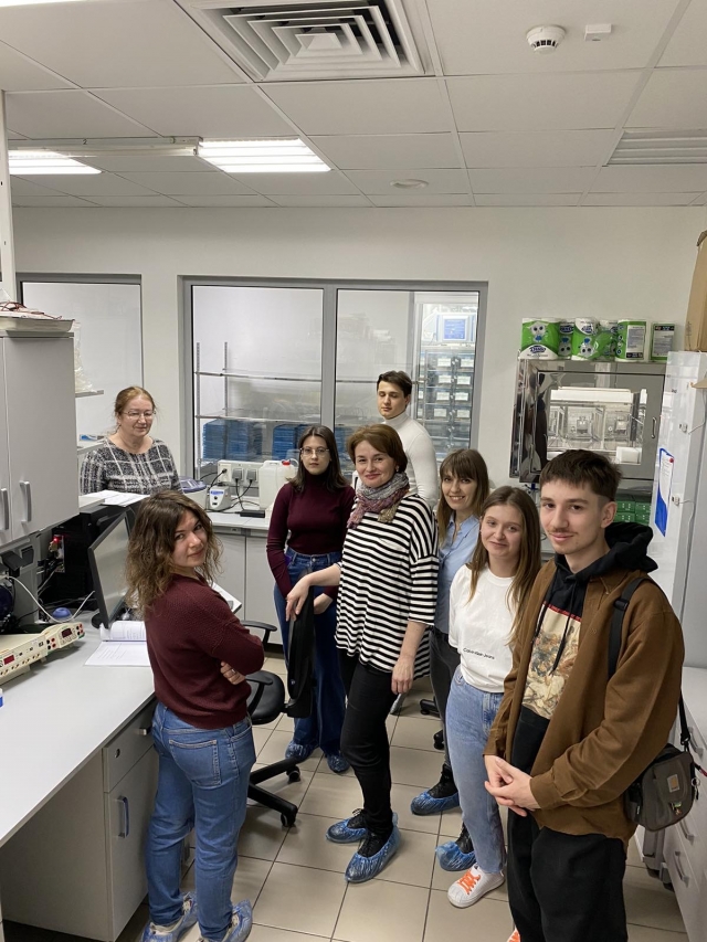 У лабораторії молекулярної біології студенти ознайомилися з оснащенням лабораторій для культивування клітин, правилами та технікою безпеки роботи у стерильних умовах. У реальному часі відвідувачі побачили роботу біореакторів, які використовують для отримання рекомбінантних білків у великих масштабах. Також співробітники відділу нових технологій детально розповіли про біотехнологічні методи, які вони використовують на базі лабораторії для біосинтезу цільових речовин.