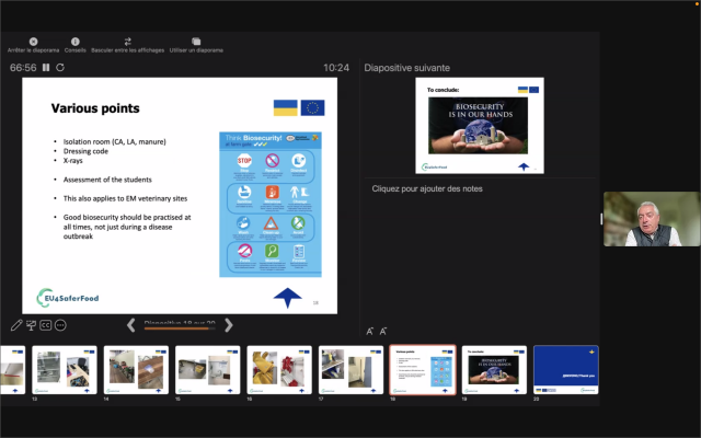 Цього разу основним питанням порядку денного робочого засідання стали актуальні питання біозахисту і їх раціональне впровадження на факультеті ветеринарної медицини. За час зустрічі експерт поділився власним досвідом стосовно особливостей впровадження культури біозахисту в умовах різних факультетів ветеринарної медицини і різних країн. У ході обговорення вдалось скоординувати власну стратегію факультету ветеринарної медицини стосовно підходів біозахисту і розробити порядок їх впровадження.