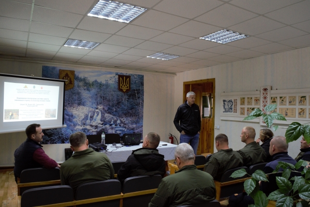 Доц. Гуменюк В.В. висвітлив методологічні аспекти підготовки фахівців лісопожежних служб, організації міжвідомчих навчань та імплементації методик комунікації з територіальними громадами. Доповідач наголосив на необхідності інтеграції зусиль усіх стейкхолдерів, включаючи лісокористувачів, органи місцевого самоврядування, підрозділи ДСНС, Збройні Сили України, територіальні громади та волонтерські організації, для ефективного управління пожежними ризиками.