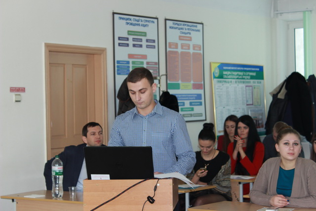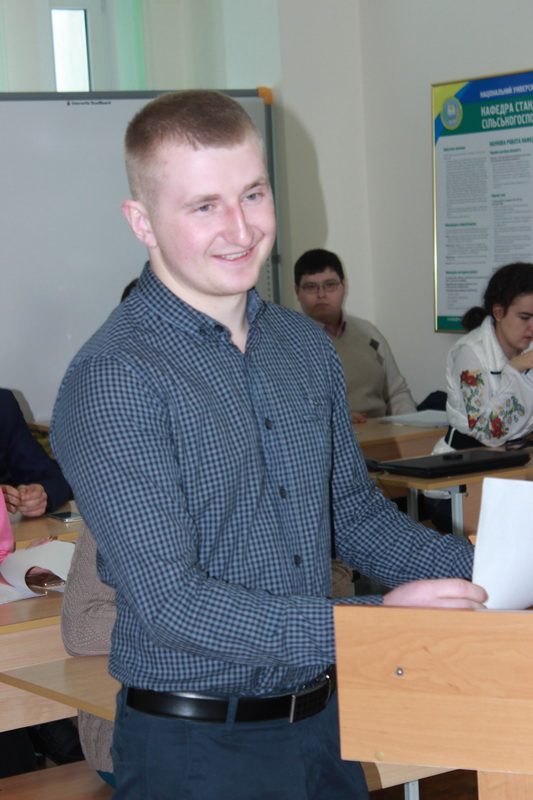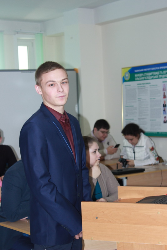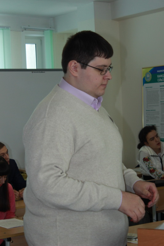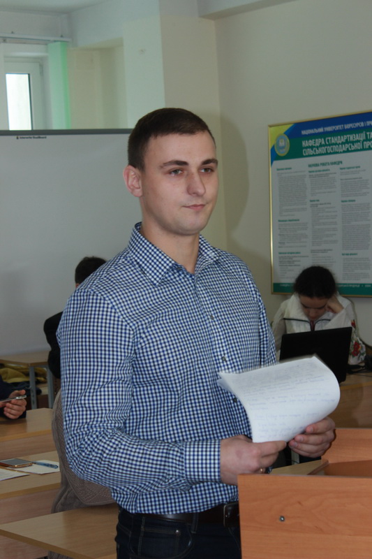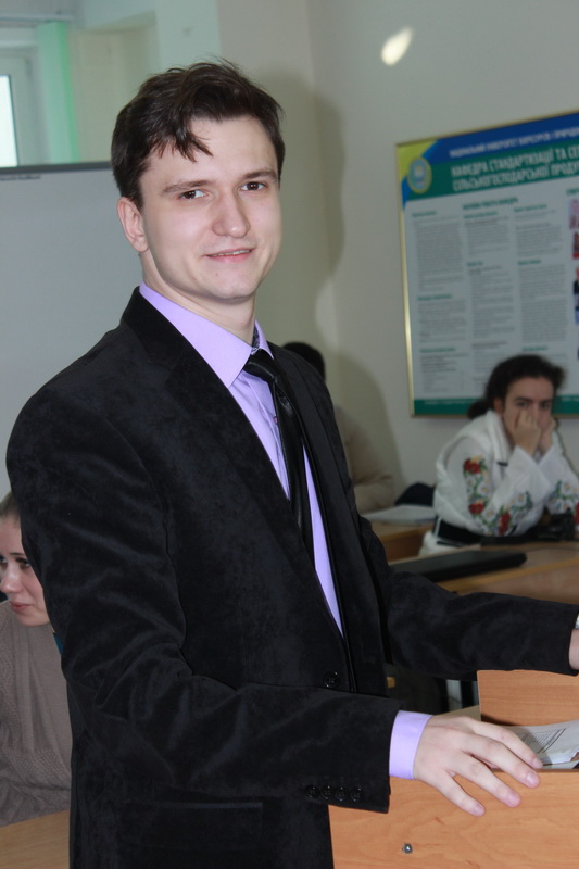 Представивши гостю декан надала слово завідувачу кафедри стандартизації та сертифікації с.-г. продукції доктору технічних наук Владиславу Сухенку, який зазначив урочистість цього захисту і його відповідальність. Враховуючи те, що Владислав Юрійович на посаді повноправного завідувача кафедри тільки перший рік, то для нього це те ж був відповідальний момент, так як на захисті магістрів визначається робота всієї кафедри, це як збирання врожаю. Якщо добре кафедра попрацювала висаджуючи знання у благодатний ґрунт на початку навчання, то і буде зібраний гарний врожай восени.