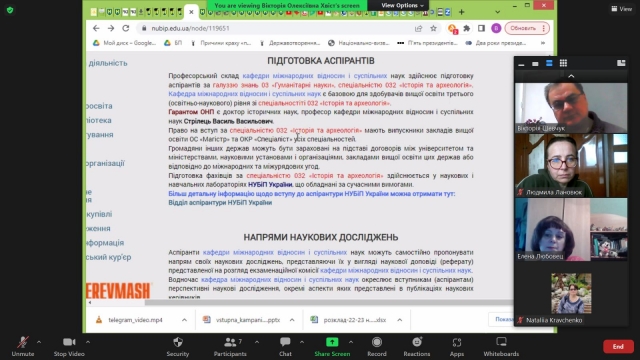 На засіданні розглянуто питання підготовки до акредитації ОНП «Історія України», що відбудеться в квітні 2023 р., та проєкти оновленої ОНП «Історія України» та навчального плану підготовки аспірантів кафедри на наступний – 2023/2024 н. р.