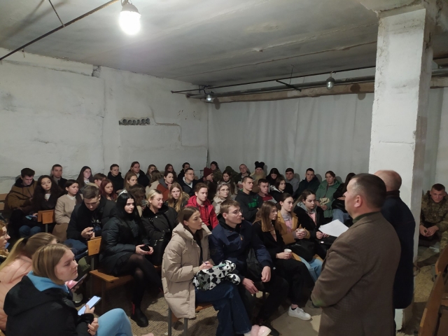 11 листопада під час повітряної тривоги в укритті відбулося засідання деканату факультету ветеринарної медицини зі старостами академічних груп 1-6 курсів. Метою зустрічі було обговорення освітнього процесу в першому семестрі 2023-2024 н.р. Явка старост або їх заступників була понад 90 %.